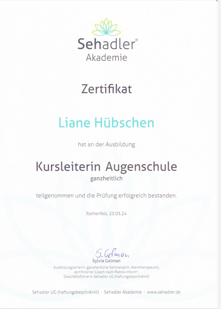 Durch Zufall entdeckte ich die Ausschreibung von Sylvia zur Ausbildung als zertifizierte Kursleiterin Augenschule ganzheitlich für gesundes und lebendiges Sehen.