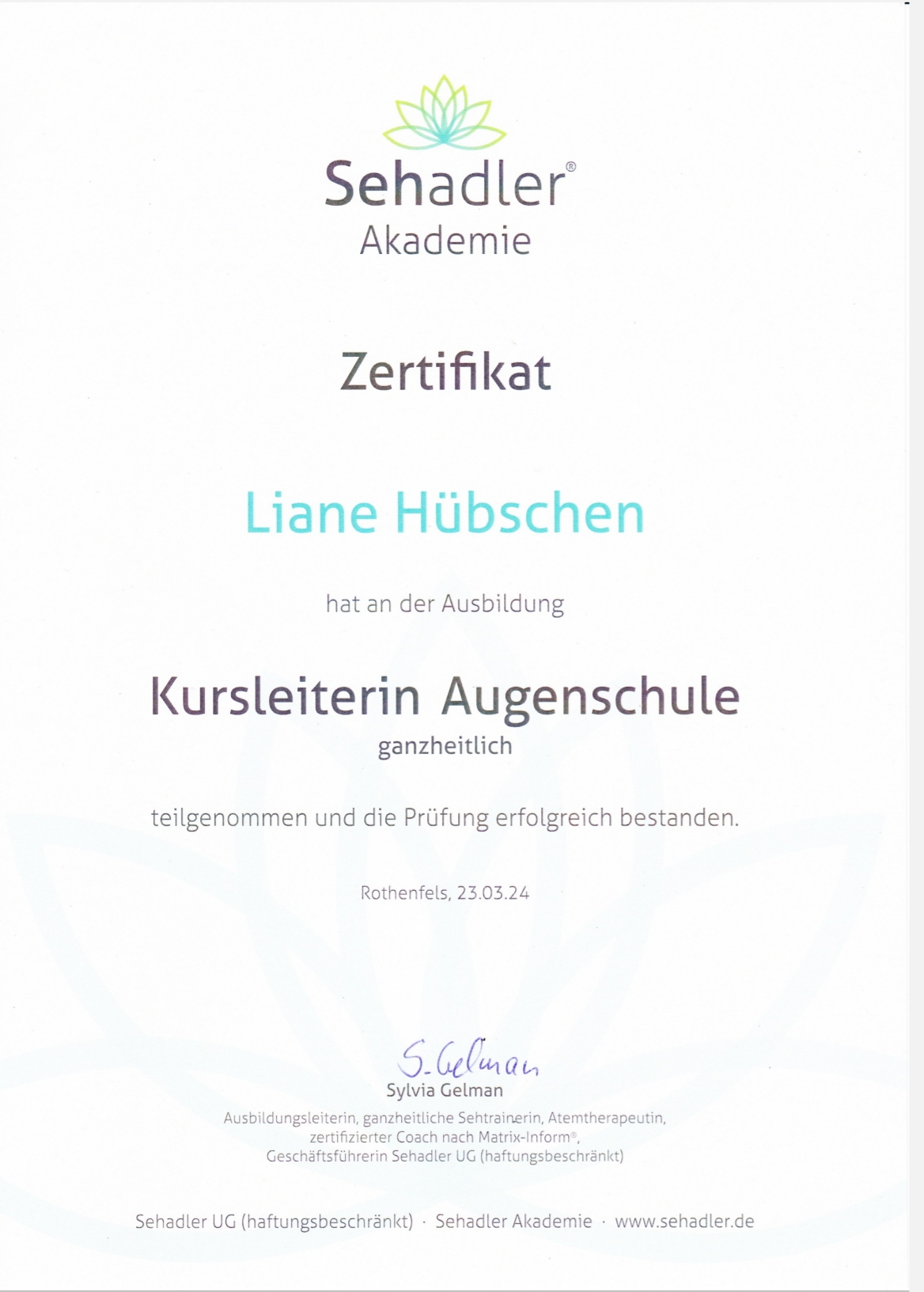 10/2023 – 03/2024 Ausbildung Kursleiterin Augenschule –