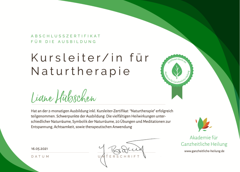 Um die wunderbaren Wirkkräfte der Natur mit möglichst vielen Menschen teilen zu können, entschied ich mich 2021 für die Weiterbildung zur Kursleiterin für Naturtherapie und spezialisierte mich aufs Waldbaden und praktiziere dies seitdem auf regelmäßigen Achtsamkeitstouren.